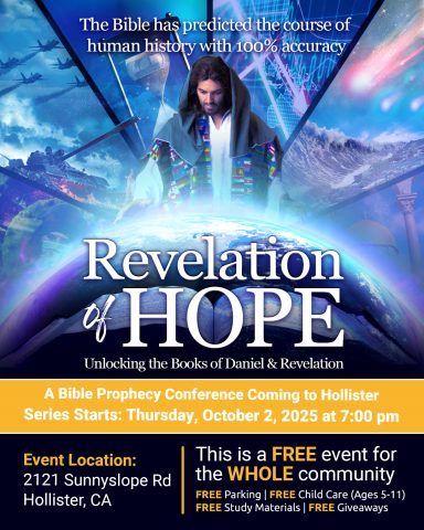 Welcome to the Hollister Seventh-day Adventist Church in Hollister, CA. We are a Christian community and would love to have you join our family. To learn more about what we believe you can visit our About Us page. Please join us for Bible study, worship, and prayer.